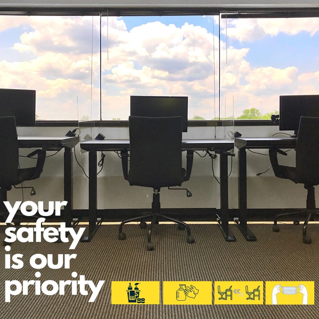 By providing access to strategically placed sanitizing supplies, increased cleaning schedules and implementing professional distancing standards we can provide a workplace where members can collaborate in person with peace of mind.